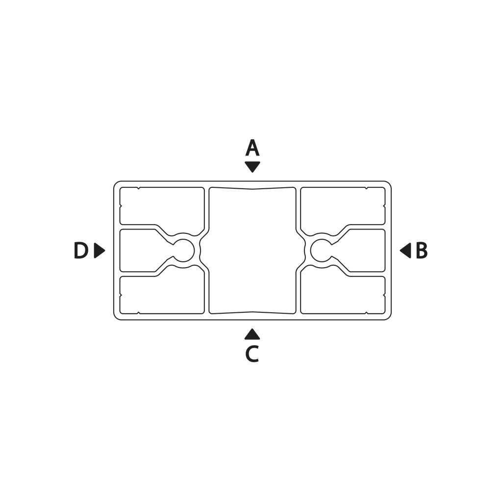 Hliníkový profil s obdélníkovým řezem určený pro vytváření běžných struktur s vyšším zatížením ve směru delší strany.