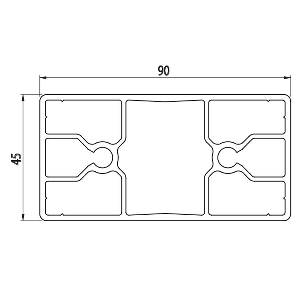 Hliníkový profil AC 45-8, 45x90, bez drážek, lehký