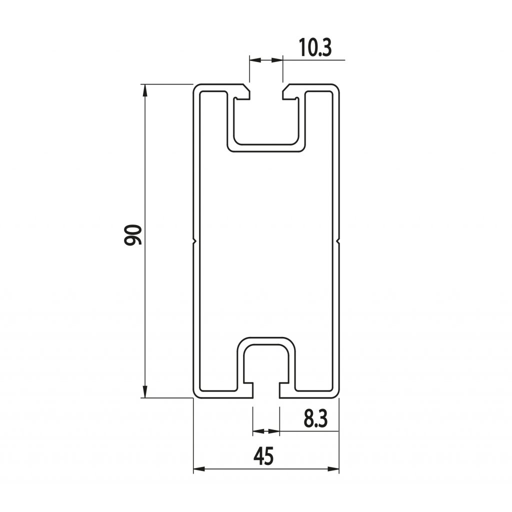 Hliníkový profil AC 45-8, 45x90, s drážkami AC 45-8 a BH 45-10