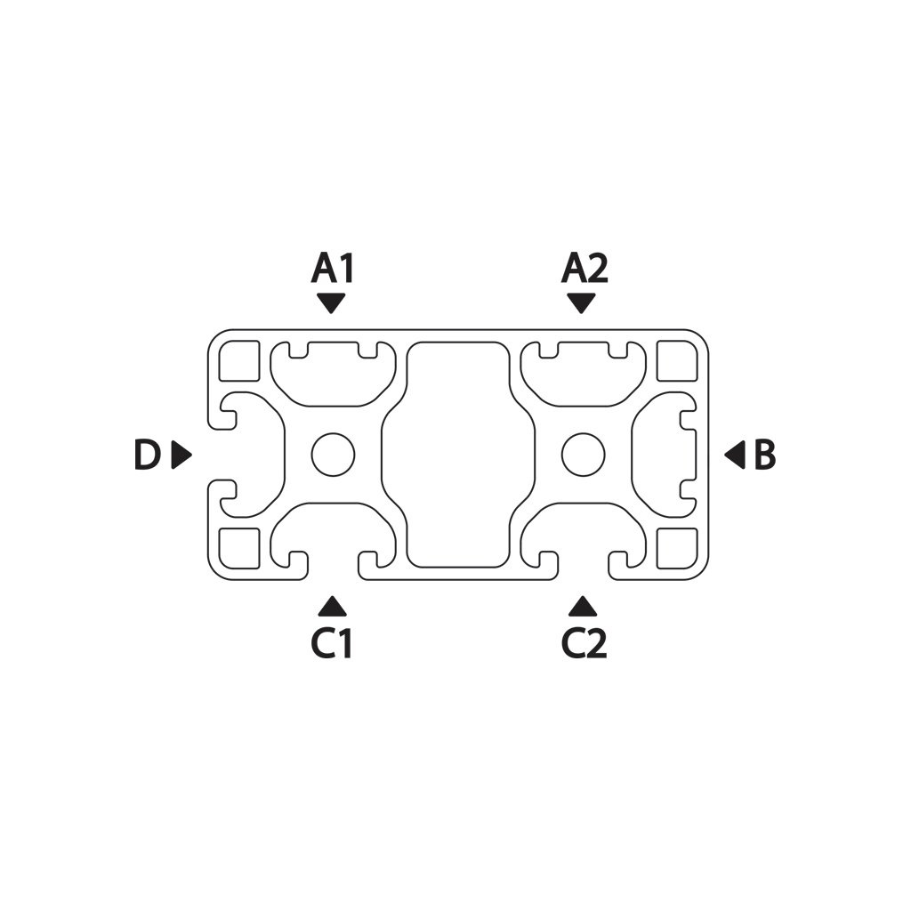 Hliníkový profil s obdélníkovým řezem určený pro vytváření běžných struktur s vyšším zatížením ve směru delší strany.