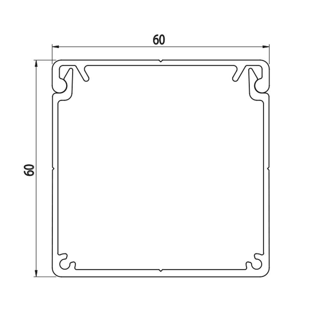 Rozměr 60x60 je kompatibilní se všemi profily s rozšířeným modulem o šířce strany 60 mm.