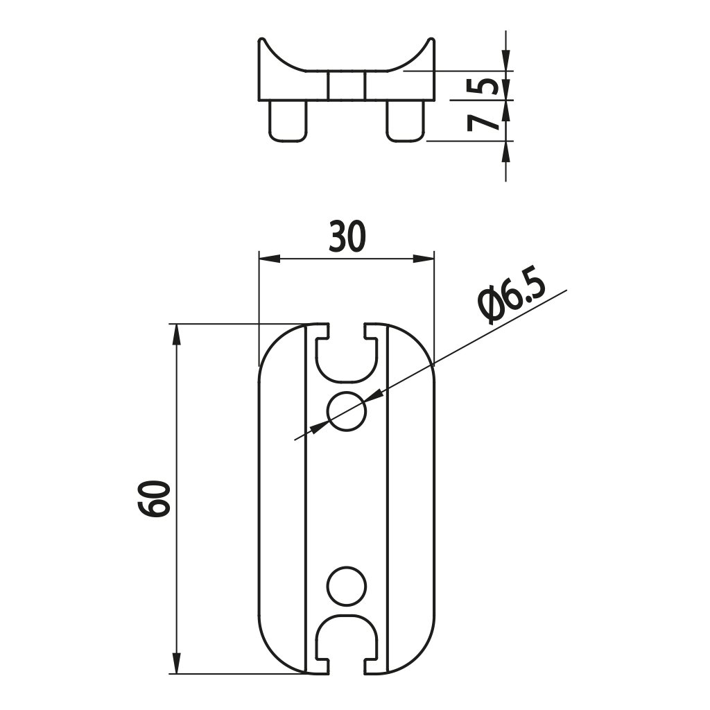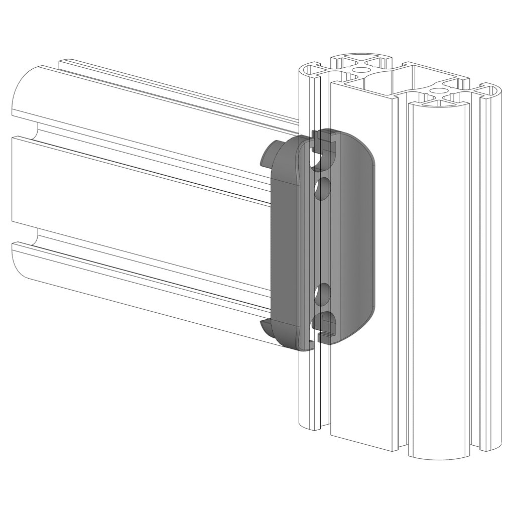 Spojka pro vytváření kolmých spojů kulatých profilů série AC 30-6 s řezem 30x60 na kulaté profily AC 30-6 s řezy 30x30 nebo 30x60.
