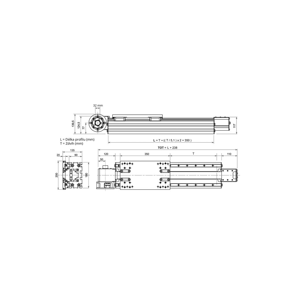 Lineární pohon 815.HHL.P, profil 90x180, pro hřídel 32 mm