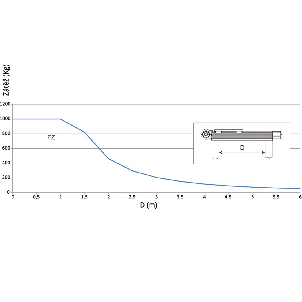 Pohyb pohonu je zajištěný HNBR pryžovým ozubeným řemenem s šípovitými zuby o šířce L=50 mm, který je připevněný k jezdci.