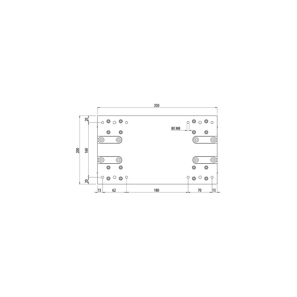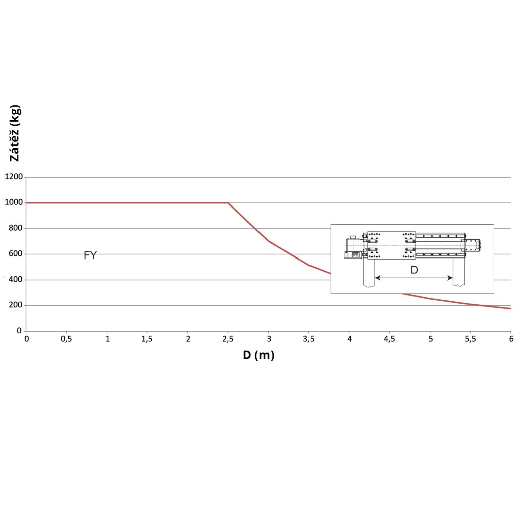 Pohyblivý jezdec s plochou 200x350 mm umístěný v horizontální poloze je vedený systémem ložisek s kluznými podložkami 20 mm s vnějším uložením.