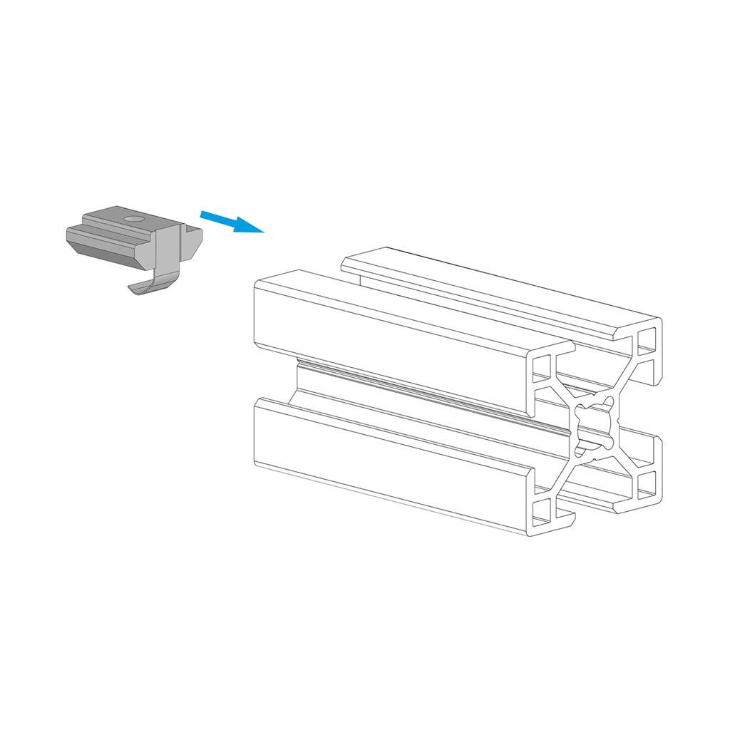 Pružina usnadňuje montáž díky možnosti nastavení polohy matice v drážce profilu.