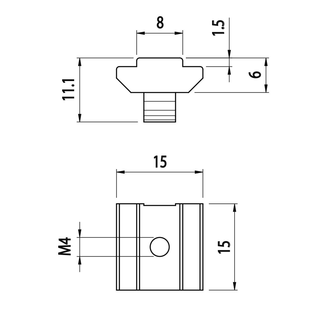 Čtvercová matice se závitem M4 pro montáž do drážek profilů sérií BH 30-8 a IM 40-8.