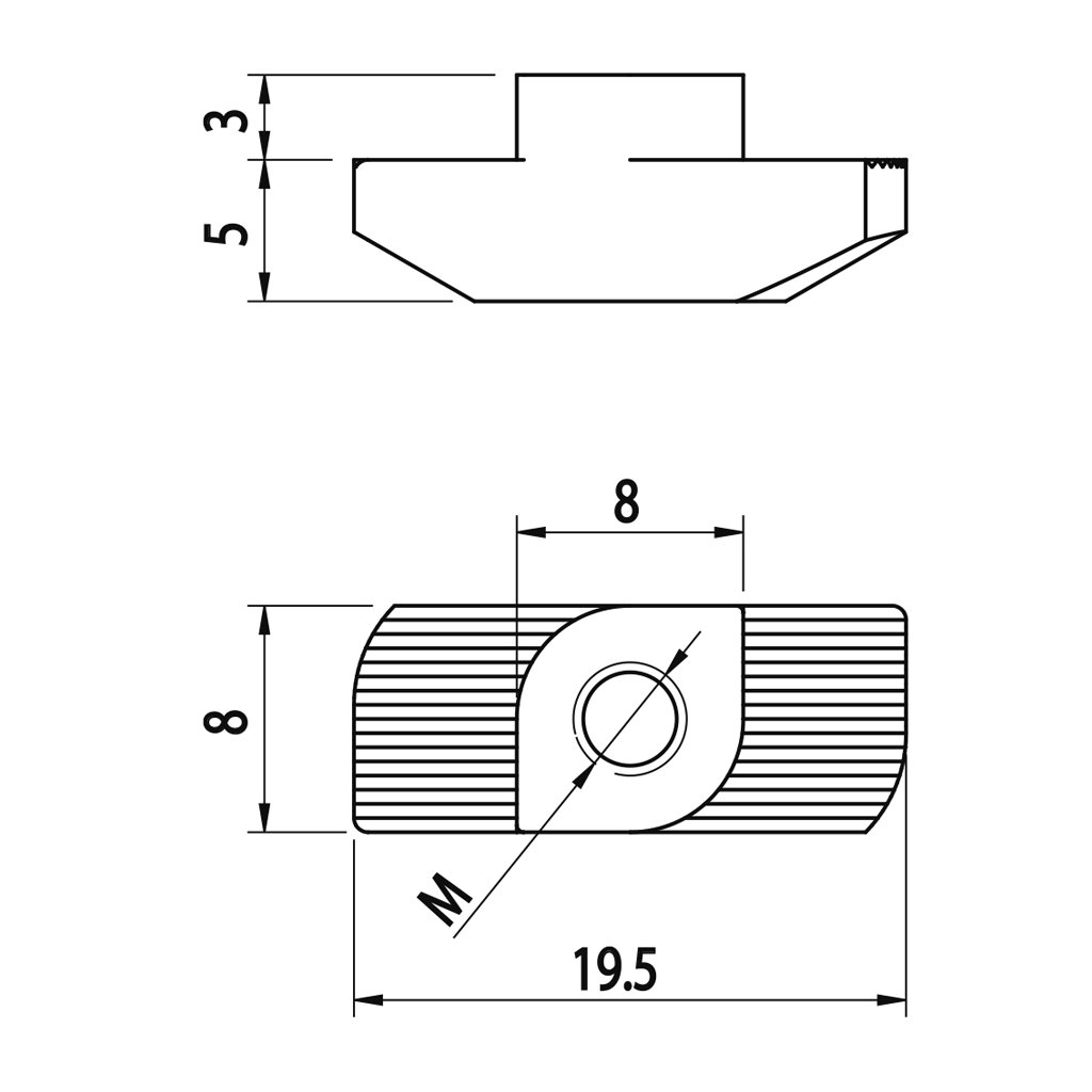Matice se závitem M4 pro montáž do drážky profilů série IM 40-8.