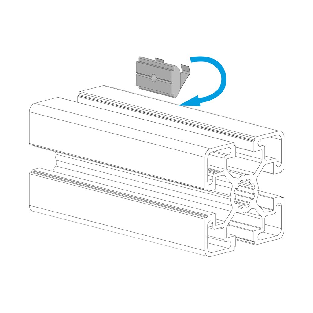 Pružina usnadňuje montáž díky možnosti nastavení polohy matice v drážce profilu.