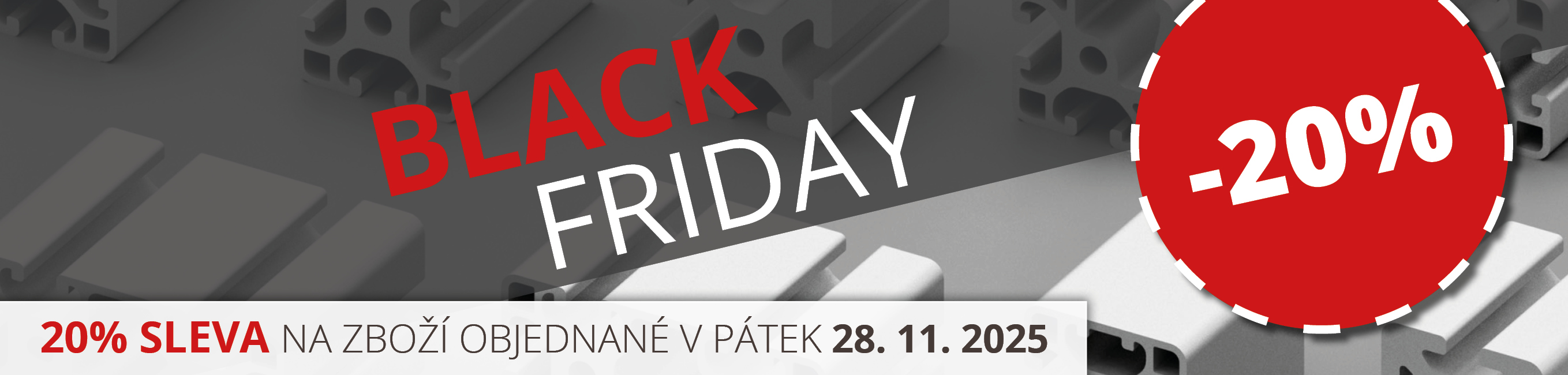 Akční sleva je platná na neomezený počet objednávek a platí pouze v pátek 28. listopadu 2025. Slevu nelze uplatnit na speciální cenové nabídky vystavené naší firmou.