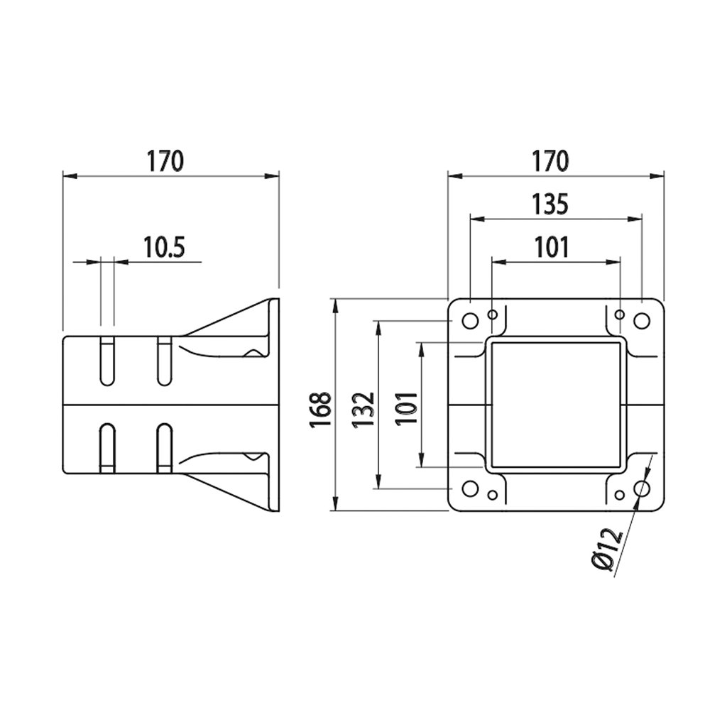 Dvojdílný podstavec určený pro montáž na profily s řezem 100x100.