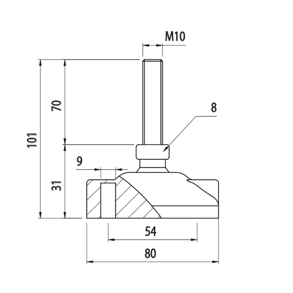 Podstavec D=80 mm, M10, nosnost 1000 kg