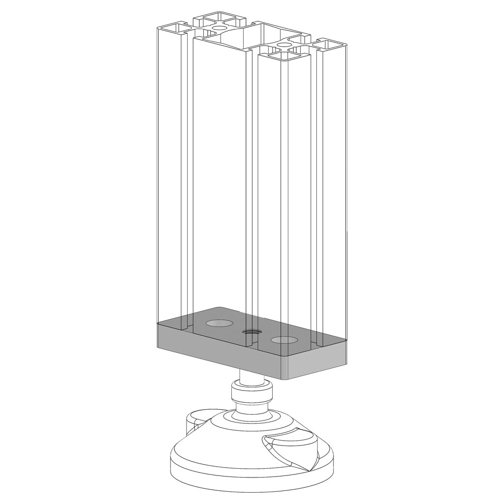 Příruba určená pro montáž podstavce nebo kolečka se závitem M12 k profilu s řezem 45x90.