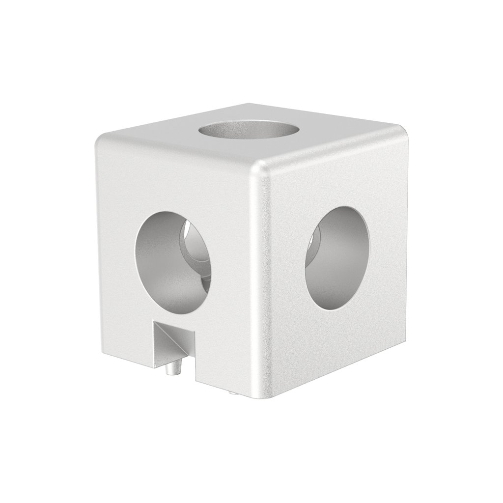 Rohová spojka pro spojení 3 profilů série BH 45-10 s řezem 45x45 pod úhlem 90°.