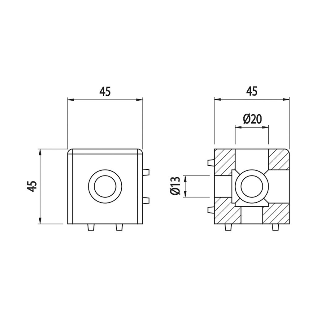 Rohová spojka 3osá, BH 45-10, 45x45