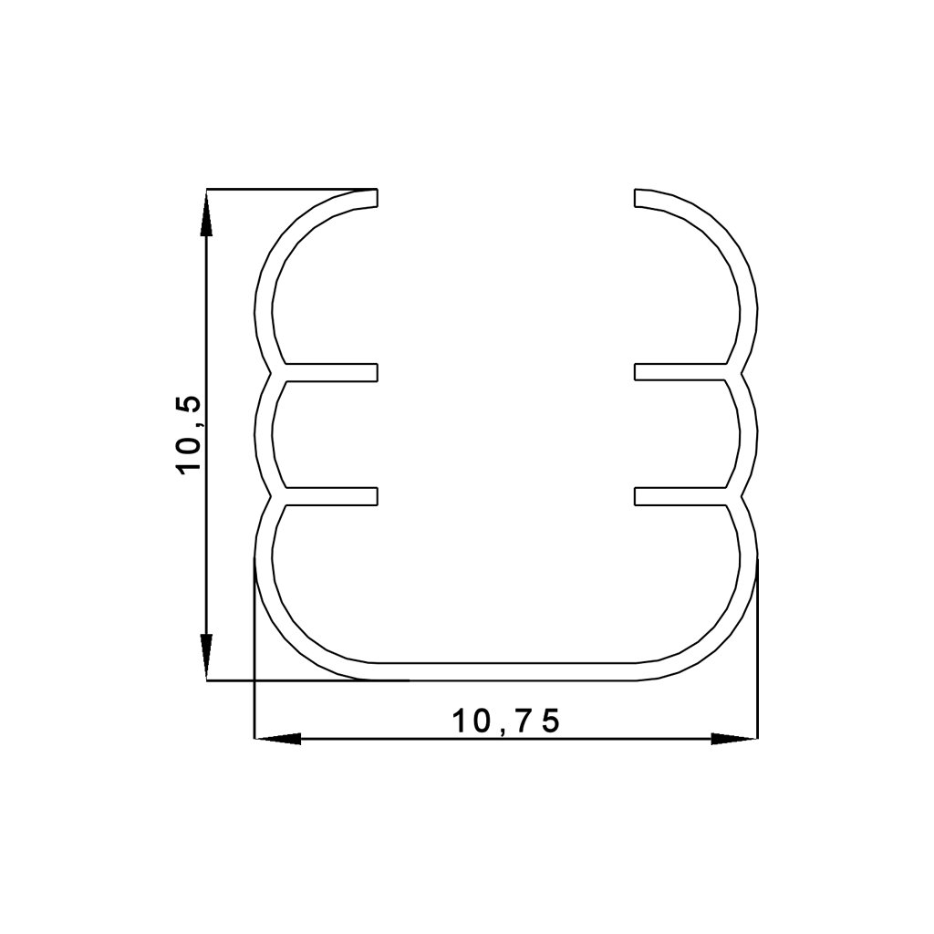Plastové těsnění pro instalaci panelů s tloušťkou 3-6 mm do drážky profilů sérií BH 40-10, BH 45-10 a BH 50-10.