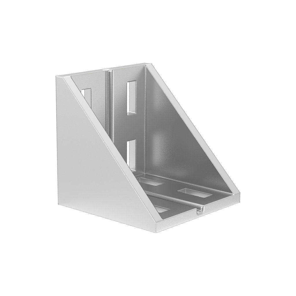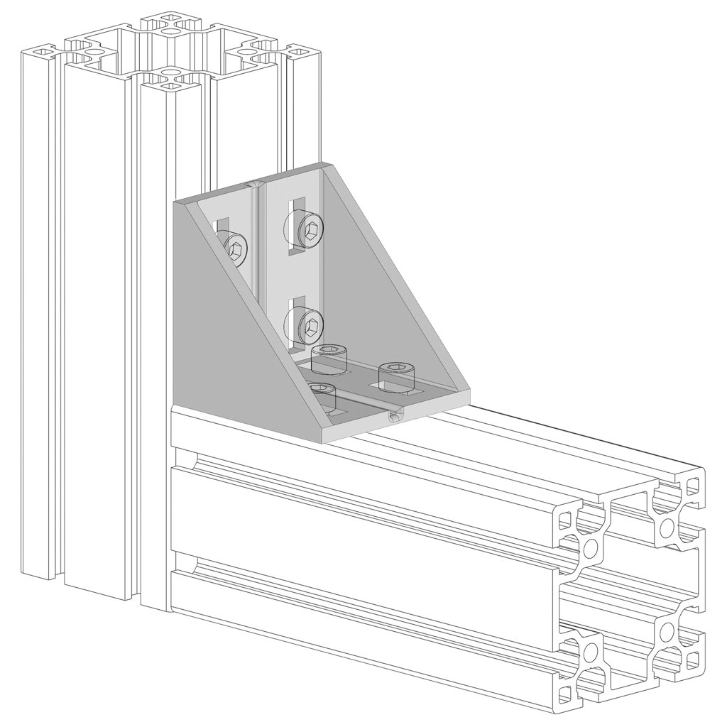 Vysoké provedení pro fixaci 4 šrouby a s boční vzpěrou zajišťuje vysokou pevnost spoje. Vhodné zejména pro profily s řezem 80x80.