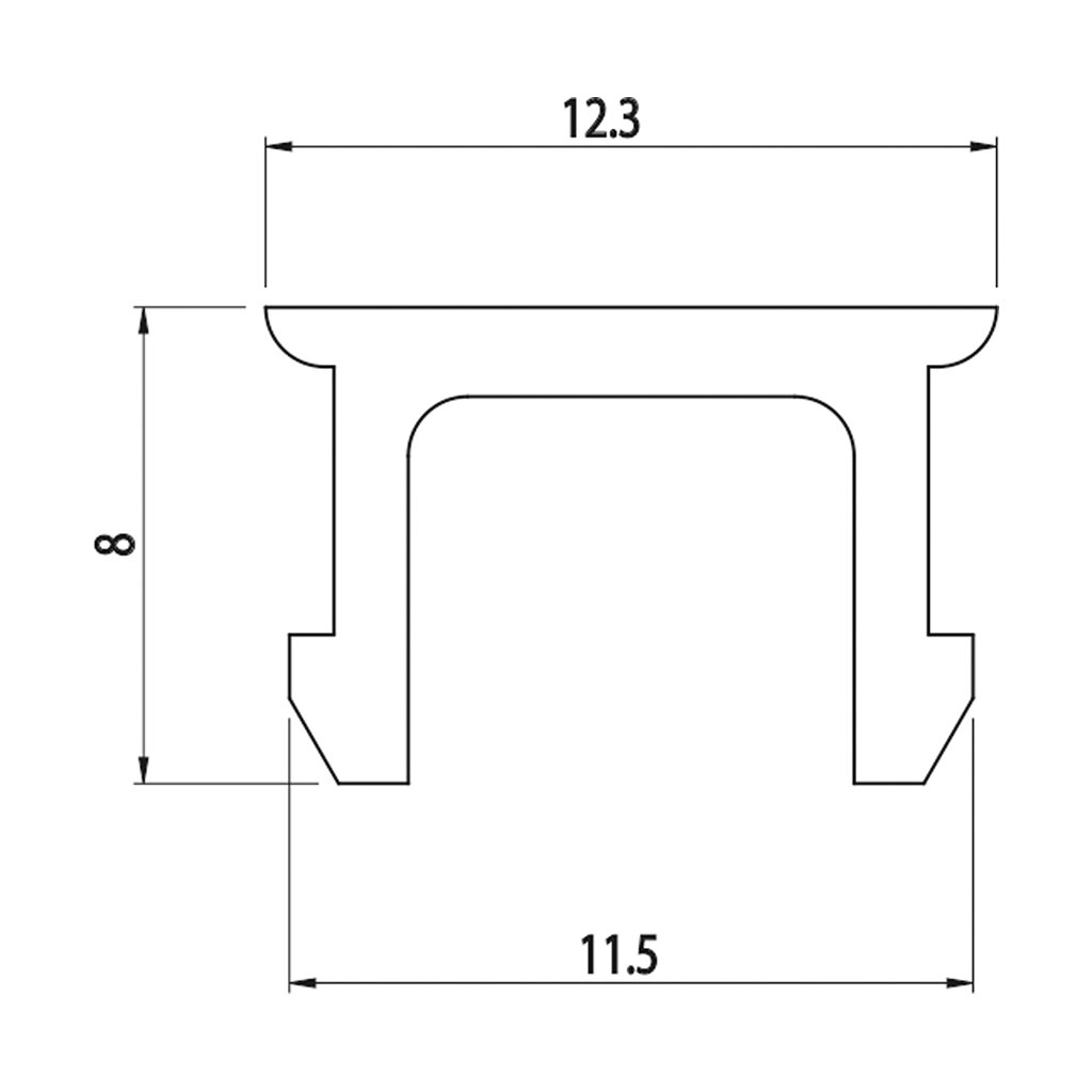 Záslepka z tvrzeného PVC určená k uzavření drážky profilů sérií BH 40-10, 45-10 a 50-10 v šedé barvě.