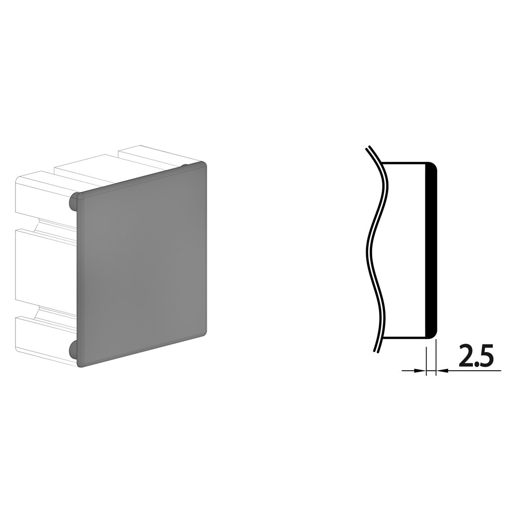 Šedá krytka z polyamidu PA vhodná pro uzavření konce profilu s řezem 80x80 v lehkém provedení.