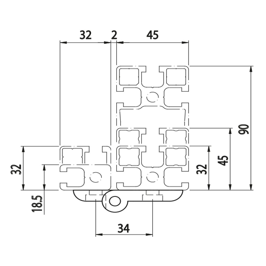 Vhodný především pro spojení 2 profilů AC 45-8 s řezy o šířkách 32/45 mm.